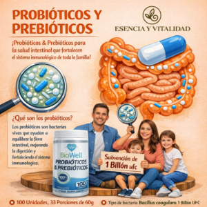 Compra Probióticos & Prebióticos BioWell en Bogotá en Esencia y Vitalidad, tu tienda online de productos naturales. Ofrecemos envíos rápidos y seguros a todo el país, atención personalizada y productos seleccionados para apoyar tu bienestar integral.